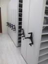 Разработали проект стеллажей по индивидуальным размерам. Установили мобильные стеллажи серии Т с механическим управлением.