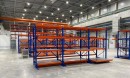 Потолочная кран-балка используется для размещения груза на выкатных полках двух линеек стеллажей.
